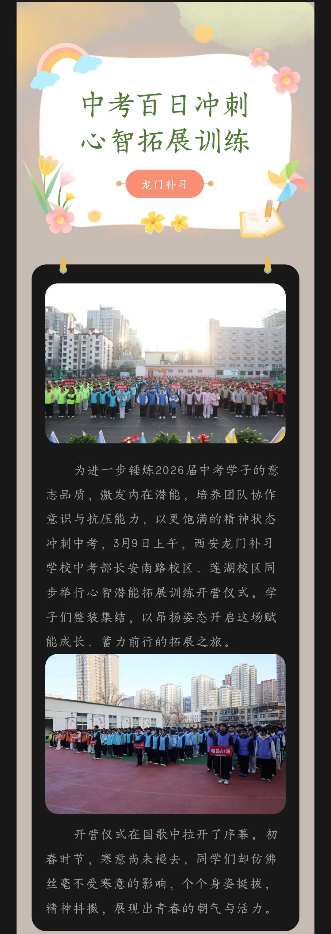 百日冲刺,心智飞扬!西安龙门补习学校2026届中考心智拓展训练开营