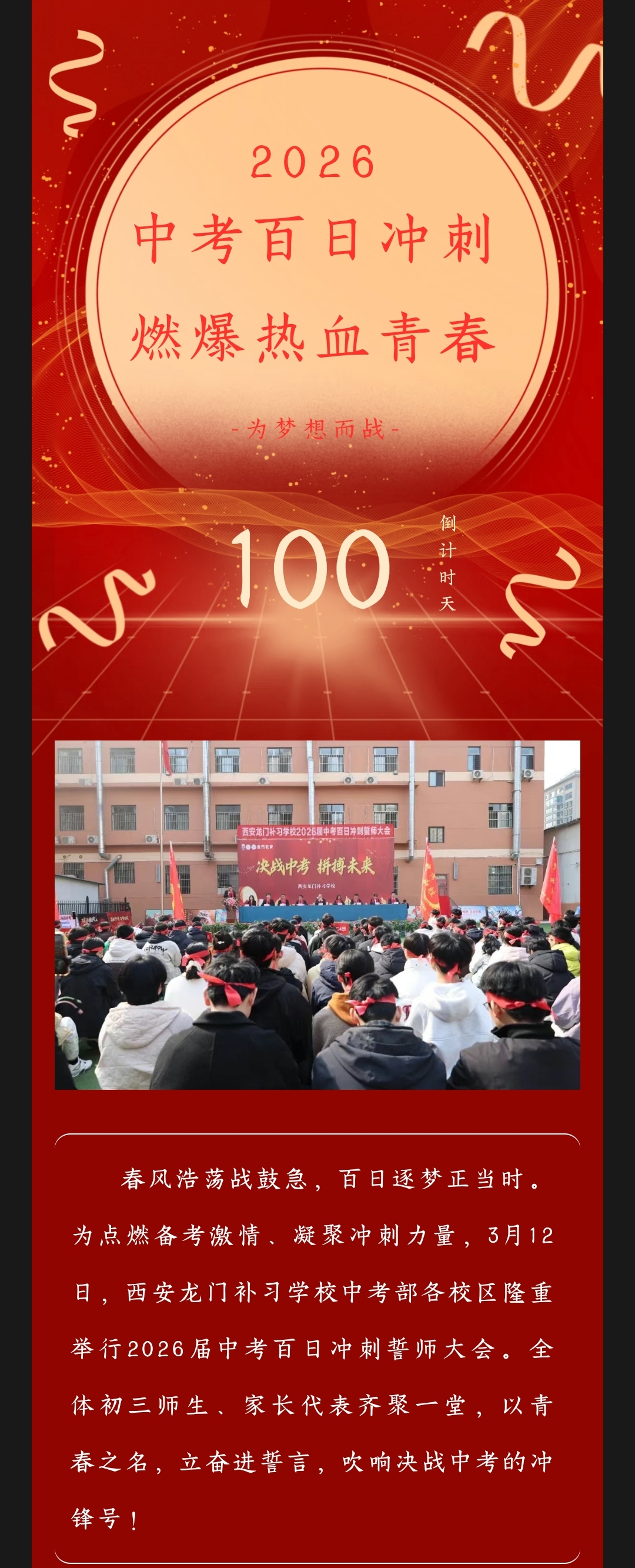 百日砺剑,鱼跃龙门——2026届中考百日冲刺誓师大会圆满举行